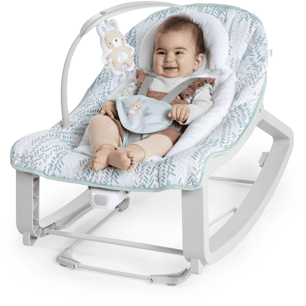 Elija entre un asiento de bebé saltarín, mecedor o normal. Las vibraciones relajantes, las dos posiciones de reclinación y el nido de bebé extraíble ayudan a los recién nacidos a sentirse cómodos y seguros. A medida que tu hijo crezca, el portabebés se convertirá en su lugar favorito de la casa.