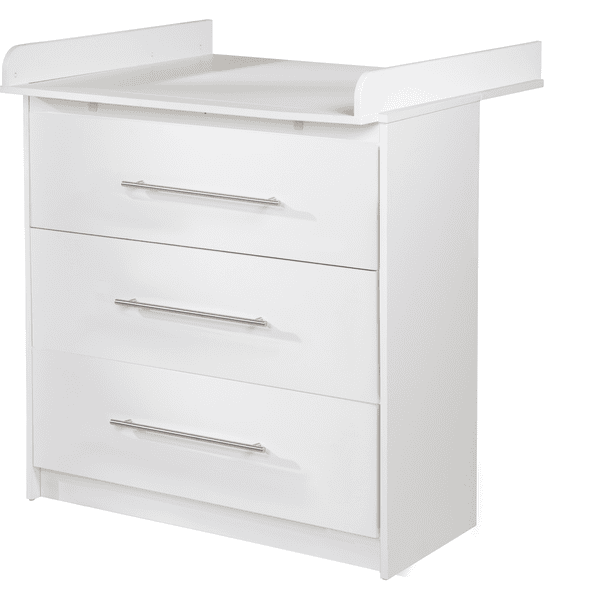 Los muebles de guardería de la serie «Maren» están disponibles individualmente o como conjuntos completos de habitación a precios asequibles. El cambiador de fácil instalación ha sido desarrollado en Alemania y cumple con las normas de seguridad vigentes según la norma EN 12221 – 1+2:2008 + A1:2013. HxA: 98,5 x 88,5 cm, profundidad con/sin cambiador: 75/38,5 cm, altura del cambiador: 90,5 cm. Color: blanco.