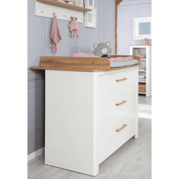 frentes blancos y un panel superior de «roble artesano». El cambiador se
