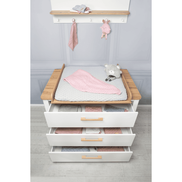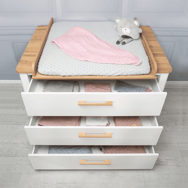 cambiador se convierte en una cómoda sin tornillos visibles en la placa