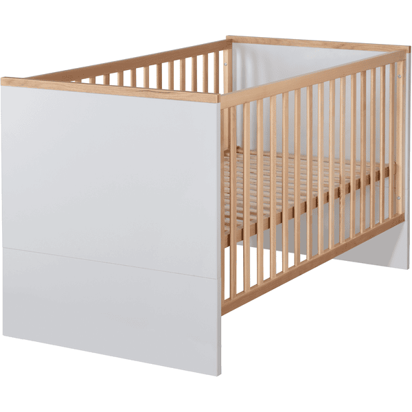 La cama para niños y bebés en crecimiento acompaña a tu bebé desde que nace hasta que empieza el colegio. La posición de tumbado superior de la cuna de altura regulable en 3 posiciones es especialmente cómoda para la espalda de los padres. Puedes levantar fácilmente a tu bebé de la cuna desde esta cómoda altura de descanso. Más adelante, la posición intermedia es la opción perfecta, ya que las 3 barras deslizantes extraíbles del elemento de la cuna permiten a su hijo pequeño entrar y salir con seguridad. La posición más baja de la cuna ajustable en altura está destinada a la cama Junior . Cuando su bebé sea mayor, la cuna combinada puede convertirse en una cama Junior utilizando los laterales de conversión que están disponibles por separado. El cabecero y el piecero de la cuna combinada pueden dividirse. Cuando se convierte en una cama Junior , se utilizan las dos mitades superiores del cabecero y el piecero y se crea un nuevo aspecto en la habitación de los niños. La cuna combinada «Tobi» puede utilizarse hasta que el niño tenga 7 años (o hasta un peso corporal de 50 kg).