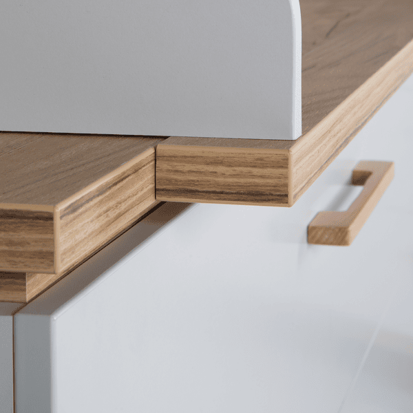 Con otros muebles infantiles de la serie «Caro» se puede crear una elegante habitación para niños o bebés. El cambiador de bebés con cambiador roba es un auténtico todoterreno que le servirá durante muchos años. El cambiador estable puede utilizarse como asiento elevado para su hijo de guardería, de modo que pueda ayudarle a vestirse fácilmente en una posición cómoda de pie. Más adelante, el mueble cambiador se convertirá en una cómoda en el salón o en el cuarto de los niños. El cambiador con asas de madera maciza de alta calidad y sin tornillos visibles es una de las versiones más amplias.