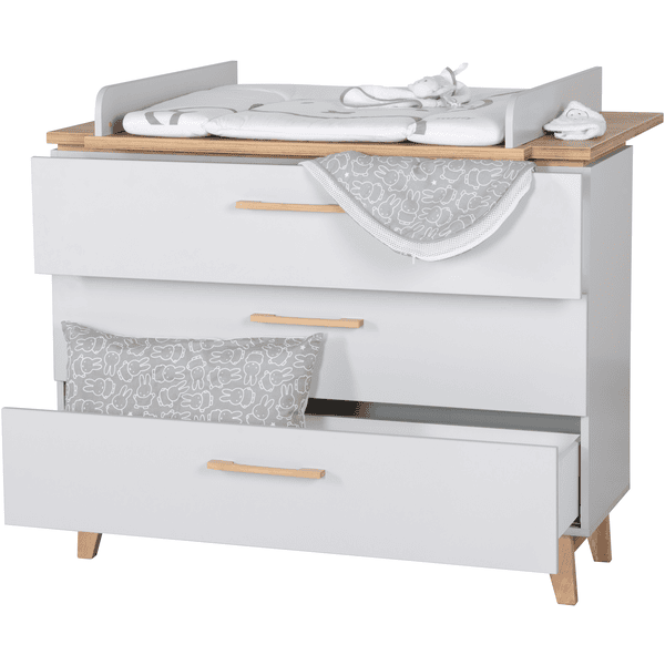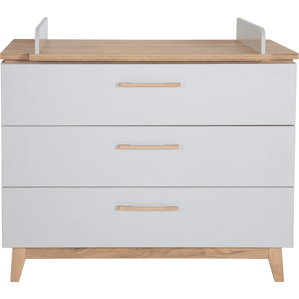 Con otros muebles infantiles de la serie «Caro», puede crear una elegante habitación infantil o de bebé. El cambiador roba con tapa cambiadora es un auténtico todoterreno que le servirá durante muchos años. El cambiador estable se puede utilizar como asiento elevado para su hijo de jardín de infancia, para que pueda ayudarle fácilmente a vestirse en una posición cómoda de pie. Más adelante, el mueble cambiador puede utilizarse como cómoda en el salón o en el cuarto de los niños.