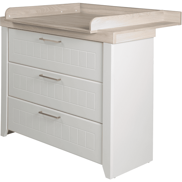 Con otros muebles infantiles de la serie «Helene», puedes crear una elegante habitación infantil o de bebé. El cambiador roba con accesorio de cambiador es un verdadero todoterreno y le servirá durante muchos años. El robusto cambiador puede utilizarse como asiento elevado para su hijo de guardería, de modo que pueda ayudarle a vestirse fácilmente en una cómoda posición de pie. Más adelante, el cambiador puede utilizarse como cómoda en el salón o en la habitación del niño. El cambiador con asas de alta calidad Metal l y sin tornillos visibles es una de nuestras versiones más amplias.