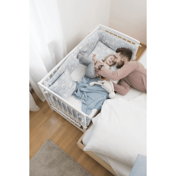 La cuna colecho Micky está hecha de madera maciza y se adapta, gracias al